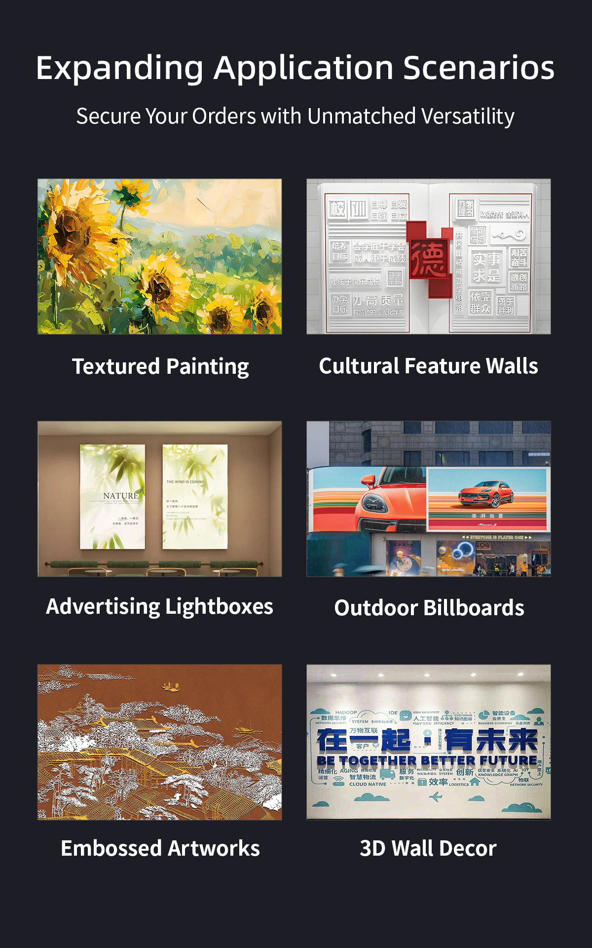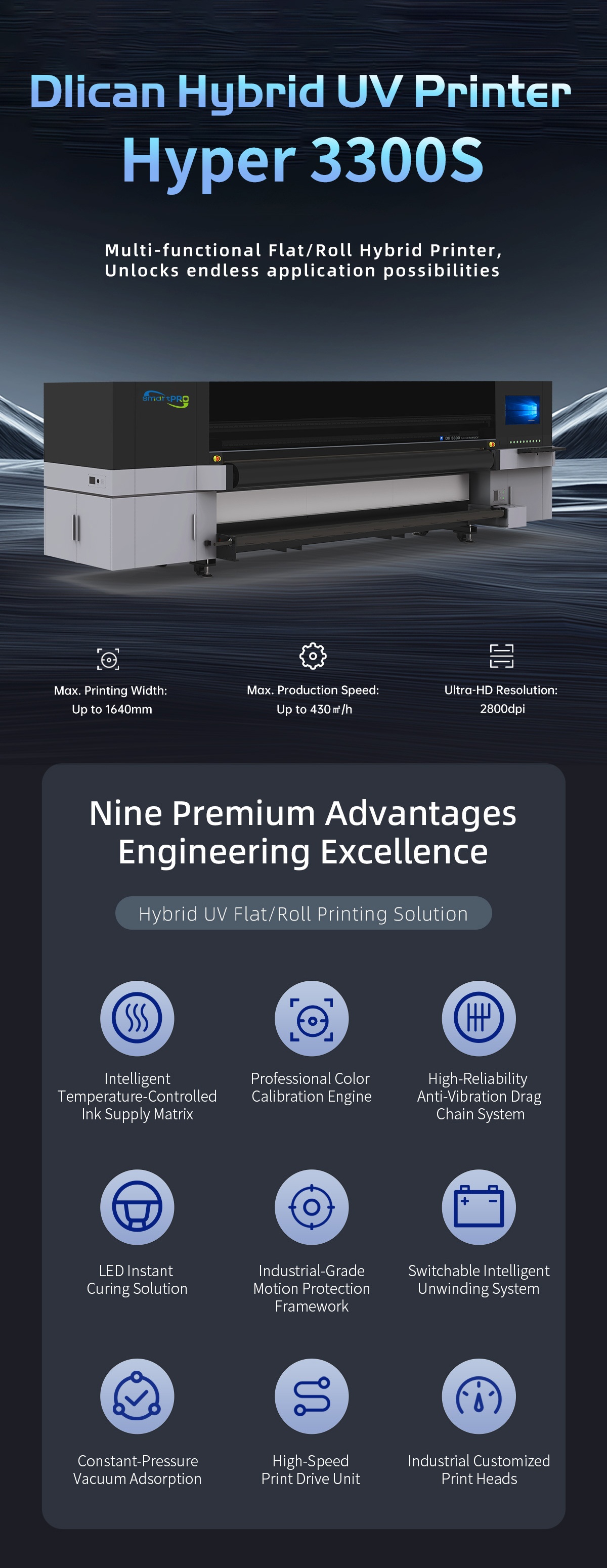 Product description:Product description:Industrial grade UV net belt printer, printing size 3.2 meters, plate and volume integrated printing platform, more widely used.