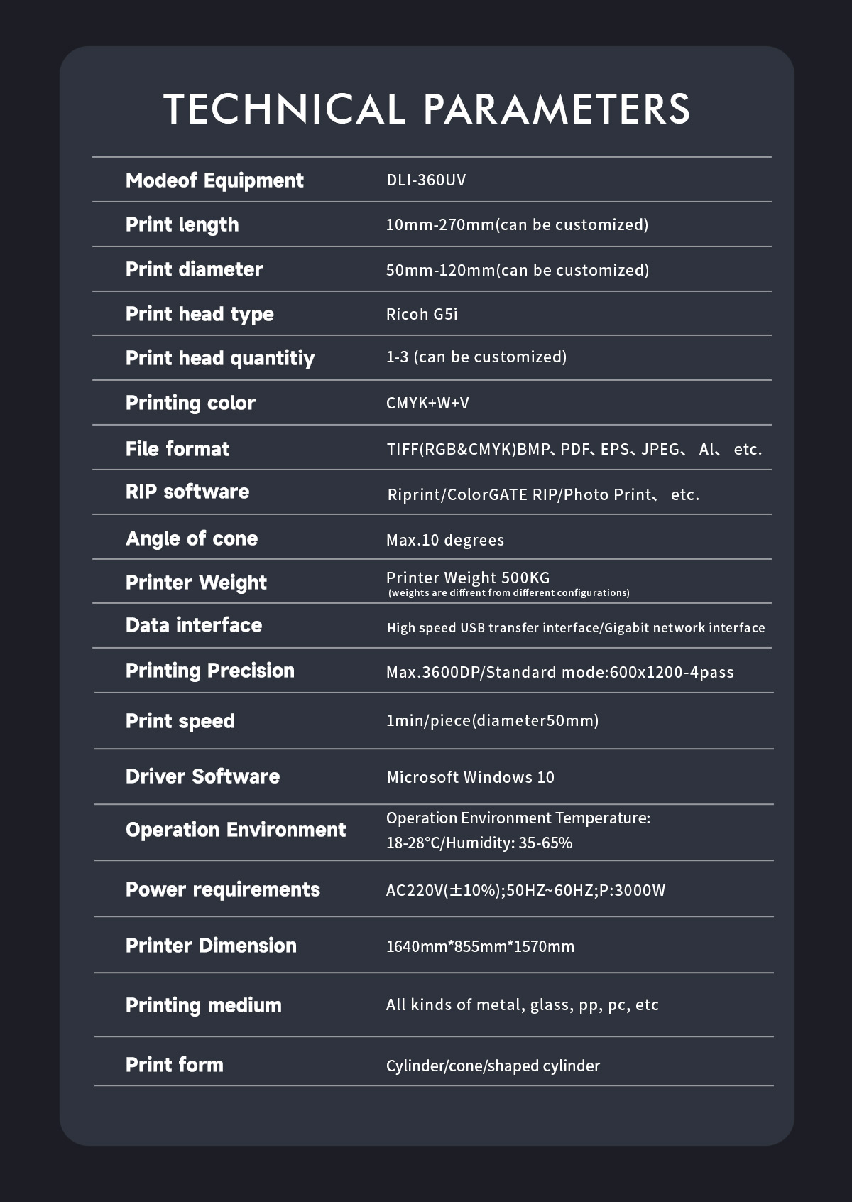 Product description:Product description:Dlican DLI-360 Helical Cylinder Printer Core Technology: Supports 360° seamless printing on cylindrical surfaces with high-precision spiral rotation mechan···